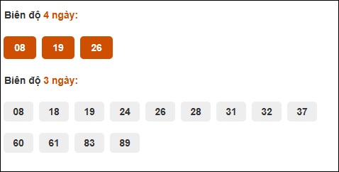 Đầu 4: 8 ngày, Đầu 6: 6 ngày, Đầu 7: 3 ngày, Đầu 9: 2 ngày, Đầu 0: 1 ngày