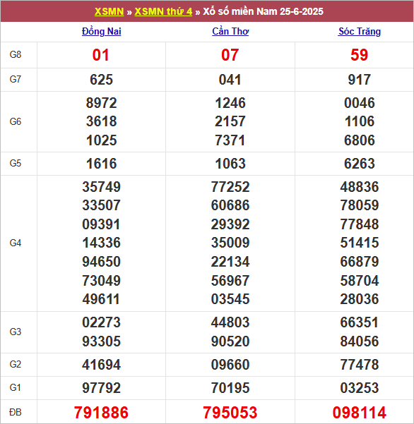 Xem lại kết quả xổ số miền Nam thứ 4 tuần trước 25/6/2025