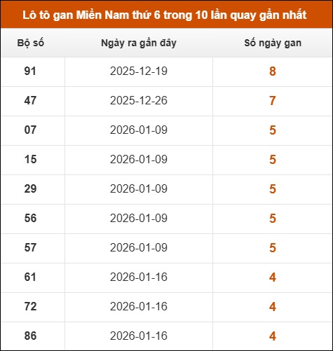 Lô tô gan XSMN thứ 6 trong 10 lần quay gần nhất