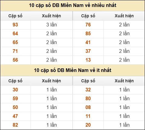 ⚡ 10 cặp số ĐB Miền Nam về nhiều nhất/ ít nhất tính đến ngày 20/02/2026: