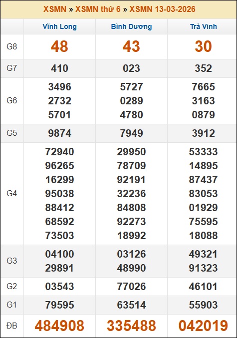 Kết quả xổ số Miền Nam ngày 13/03/2026 thứ 6 tuần trước