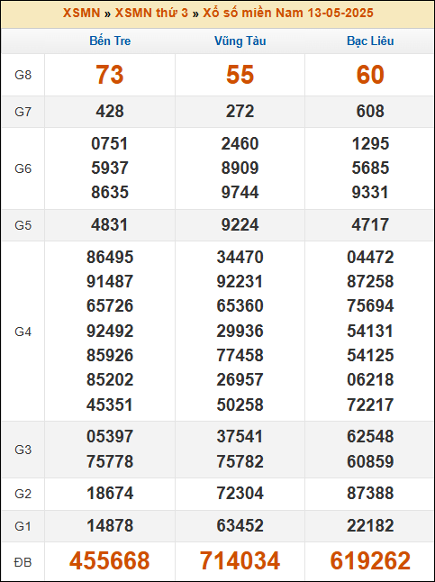 Bảng kết quả kỳ trước 13/5/2025