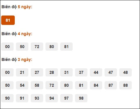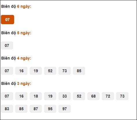 Đuôi 7: 5 ngày, Đuôi 5: 3 ngày, Đuôi 1: 2 ngày, Đuôi 3: 2 ngày, Đuôi 9: 2 ngày