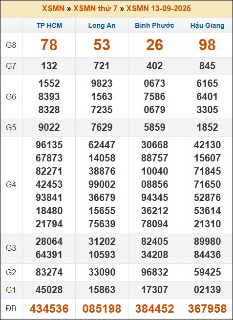 Kết quả xổ số Miền Nam 13/09/2025 thứ 7 tuần trước
