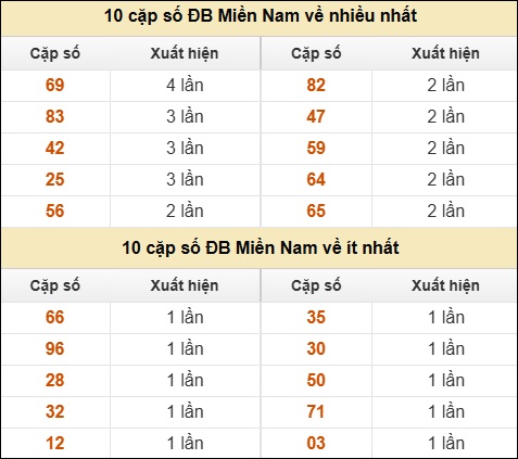 ⚡ 10 cặp số ĐB Miền Nam về nhiều nhất/ ít nhất tính đến ngày 21/11/2025: