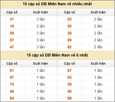⚡ 10 cặp số ĐB Miền Nam về nhiều nhất/ ít nhất tính đến ngày 21/03/2026: