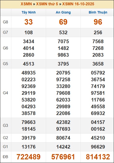 Kết quả xổ số Miền Nam 16/10/2025 thứ 5 tuần trước