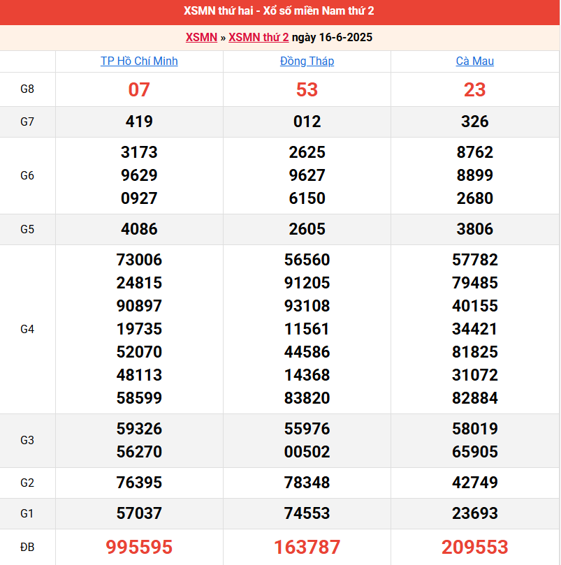Quay thử kết quả miền Nam ngày 23/6/2025