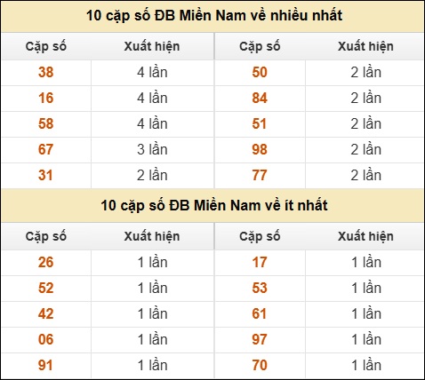 ⚡ 10 cặp số ĐB Miền Nam về nhiều nhất/ ít nhất tính đến ngày 24/01/2026: