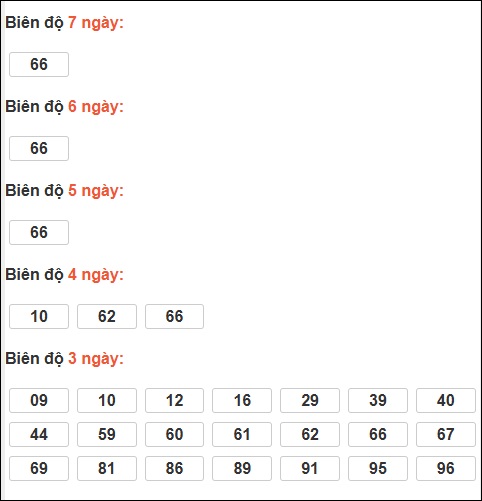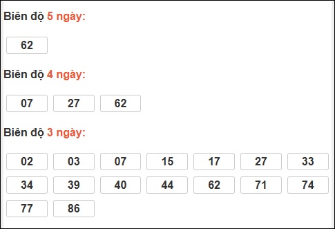 Đuôi 2: 6 ngày, Đuôi 1: 4 ngày, Đuôi 5: 4 ngày, Đuôi 0: 3 ngày, Đuôi 6: 3 ngày