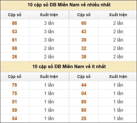 ⚡ 10 cặp số ĐB Miền Nam về nhiều nhất/ ít nhất tính đến ngày 24/9/2025: