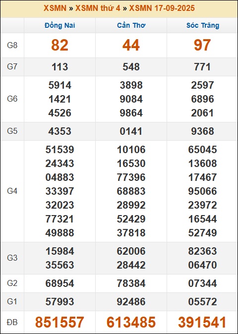 1. ✔️Xem lại KQXSMN thứ 4 tuần trước 17/9/2025