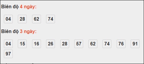 Đuôi 4: 6 ngày, Đuôi 5: 4 ngày, Đuôi 1: 3 ngày, Đuôi 3: 3 ngày, Đuôi 2: 1 ngày