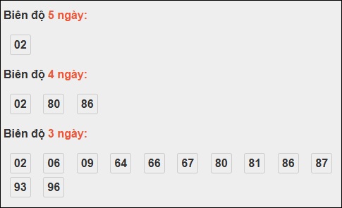 Đầu 4: 3 ngày, Đầu 6: 3 ngày, Đầu 0: 2 ngày, Đầu 3: 2 ngày, Đầu 8: 2 ngày