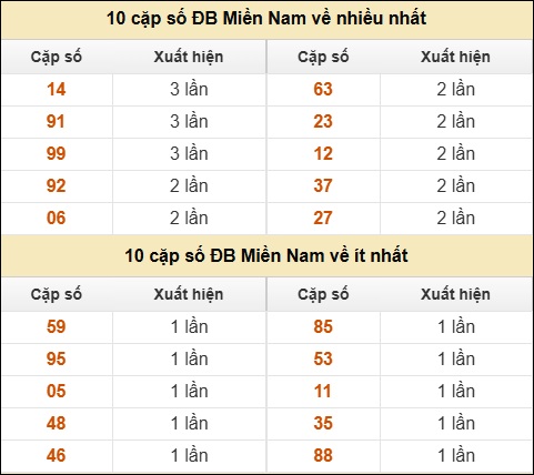 ⚡ 10 cặp số ĐB Miền Nam về nhiều nhất/ ít nhất tính đến ngày 26/01/2026: