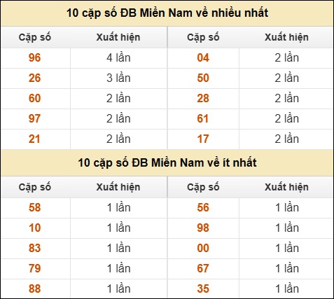 ⚡ 10 cặp số ĐB Miền Nam về nhiều nhất/ ít nhất tính đến ngày 27/01/2026:
