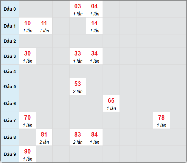 ⚡ Cặp số về nhiều nhất: 03 - 43 - 54 - 69 - 04