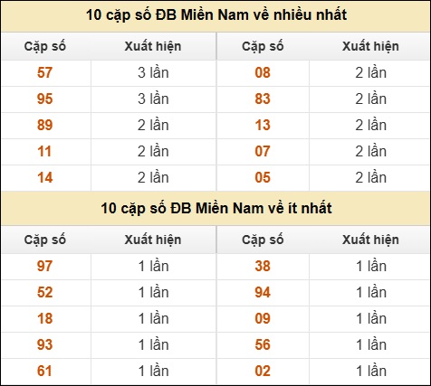 ⚡ 10 cặp số ĐB Miền Nam về nhiều nhất/ ít nhất tính đến ngày 29/01/2026: