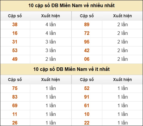 ⚡ 10 cặp số ĐB Miền Nam về nhiều nhất/ ít nhất tính đến ngày 29/11/2025:
