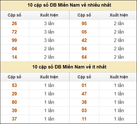 ⚡ 10 cặp số ĐB Miền Nam về nhiều nhất/ ít nhất tính đến ngày 03/11/2025: