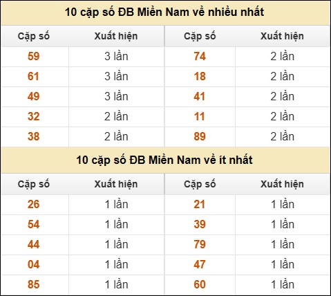 ⚡ 10 cặp số ĐB Miền Nam về nhiều nhất/ ít nhất tính đến ngày 03/12/2025: