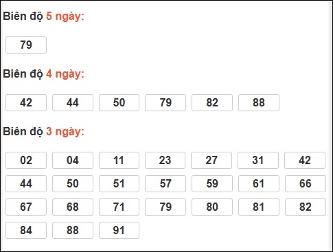 Đuôi 2: 12 ngày, Đuôi 3: 11 ngày, Đuôi 6: 8 ngày, Đuôi 4: 5 ngày, Đuôi 5: 5 ngày