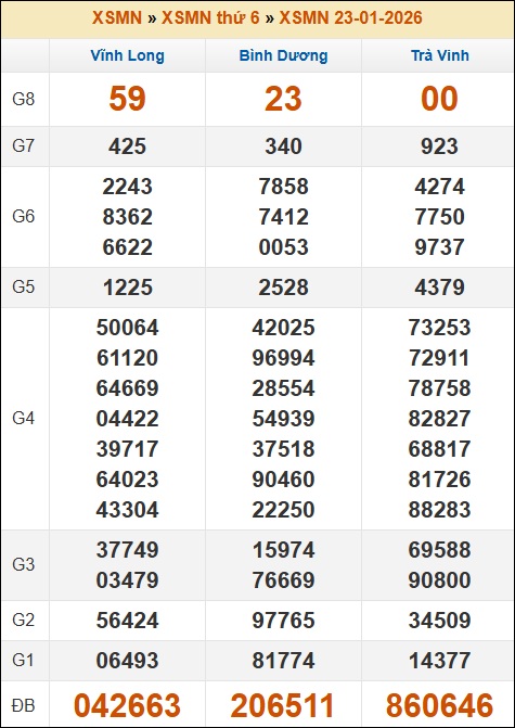 Kết quả xổ số Miền Nam ngày 23/01/2026 thứ 6 tuần trước