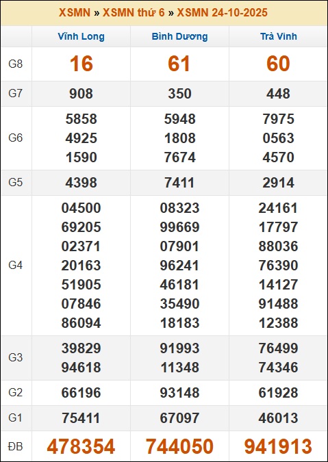 Kết quả xổ số Miền Nam ngày 24/10/2025 thứ 6 tuần trước
