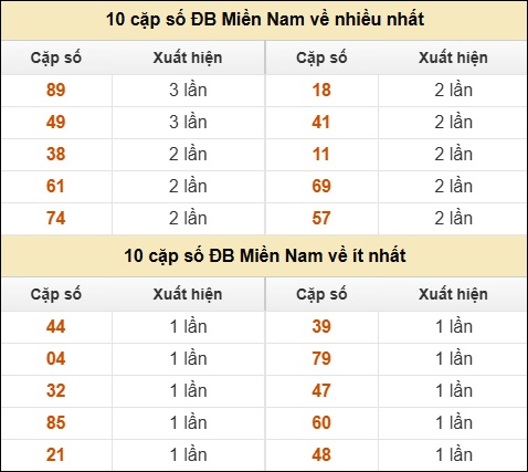 ⚡ 10 cặp số ĐB Miền Nam về nhiều nhất/ ít nhất tính đến ngày 31/12/2025: