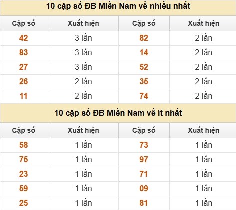 ⚡ 10 cặp số ĐB Miền Nam về nhiều nhất/ ít nhất tính đến ngày 31/7/2025: