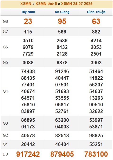 Kết quả xổ số Miền Nam 24/07/2025 thứ 5 tuần trước