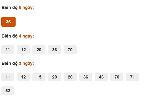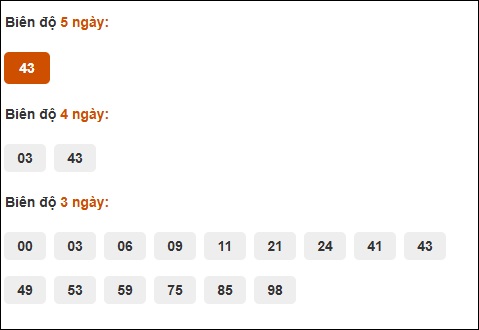 Đuôi 6: 6 ngày, Đuôi 9: 4 ngày, Đuôi 1: 3 ngày, Đuôi 4: 3 ngày, Đuôi 7: 3 ngày
