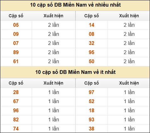 ⚡ 10 cặp số ĐB Miền Nam về nhiều nhất/ ít nhất tính đến ngày 04/12/2025: