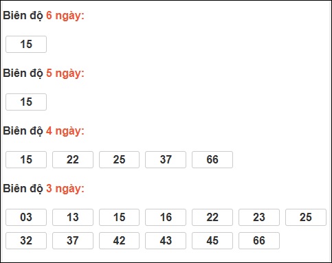 Đuôi 6: 13 ngày, Đuôi 0: 9 ngày, Đuôi 2: 6 ngày, Đuôi 1: 4 ngày, Đuôi 4: 2 ngày