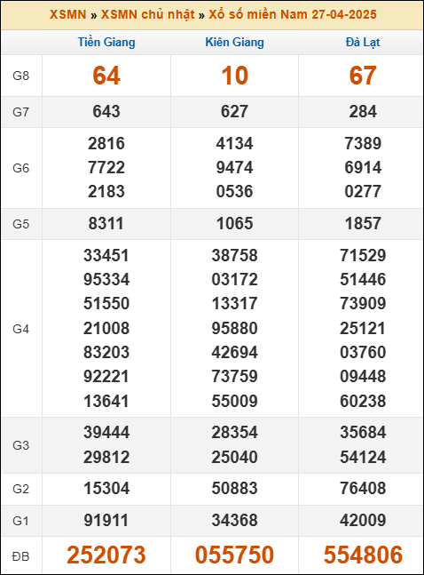 Bảng kết quả kỳ trước 27/4/2025