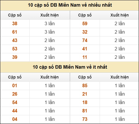 ⚡ 10 cặp số ĐB Miền Nam về nhiều nhất/ ít nhất tính đến ngày 05/11/2025: