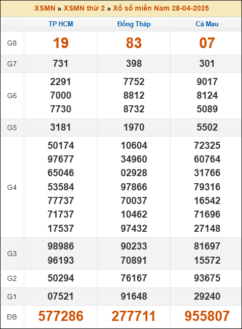 Thống kê soi cầu Miền Nam ngày 5 tháng 5 năm 2025 ba đài mở thưởng chiều tối nay chính xác. Những bộ số xuất hiện đều được ghép từ các vị trí trong bảng kết quả từng tỉnh với biên độ thời gian lô rơi liên tục 3 kỳ liên tiếp giúp bạn săn cầu đẹp, bao lô chắc trúng.