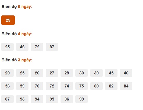 Đuôi 2: 8 ngày, Đuôi 5: 8 ngày, Đuôi 7: 4 ngày, Đuôi 0: 2 ngày, Đuôi 1: 1 ngày