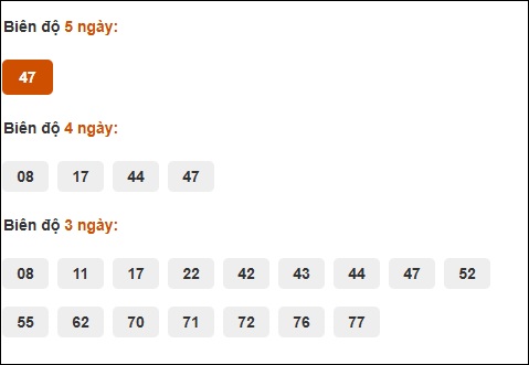 Đầu 5: 17 ngày, Đầu 1: 4 ngày, Đầu 3: 4 ngày, Đầu 7: 2 ngày, Đầu 0: 1 ngày