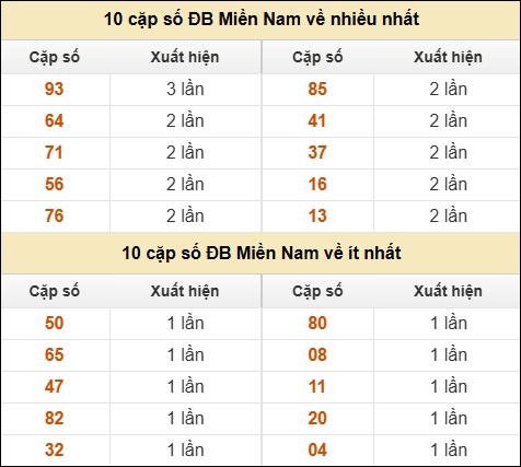 ⚡ 10 cặp số ĐB Miền Nam về nhiều nhất/ ít nhất tính đến ngày 06/03/2026: