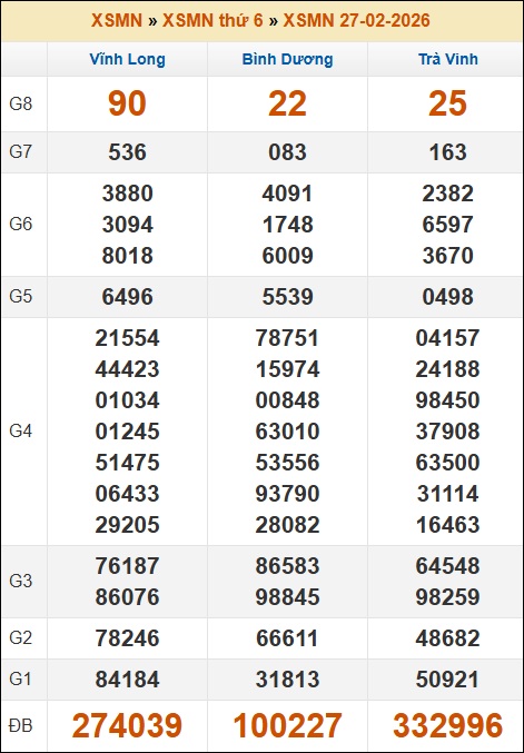 Kết quả xổ số Miền Nam ngày 27/02/2026 thứ 6 tuần trước
