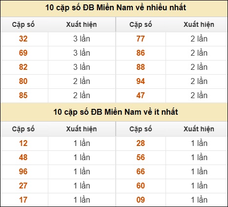 ⚡ 10 cặp số ĐB Miền Nam về nhiều nhất/ ít nhất tính đến ngày 08/08/2025: