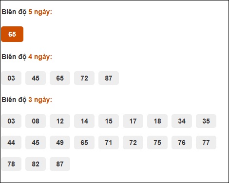 Đuôi 1: 5 ngày, Đuôi 5: 4 ngày, Đuôi 0: 3 ngày, Đuôi 3: 3 ngày, Đuôi 9: 3 ngày