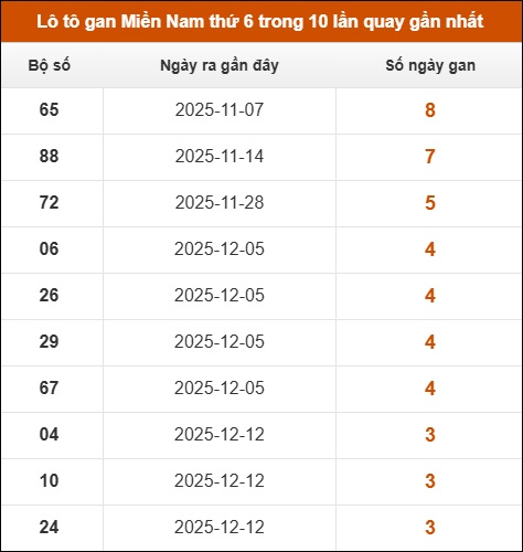 Lô tô gan XSMN thứ 6 trong 10 lần quay gần nhất