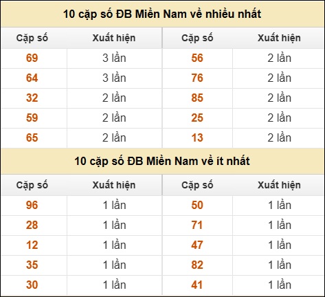 ⚡ 10 cặp số ĐB Miền Nam về nhiều nhất/ ít nhất tính đến ngày 09/01/2026: