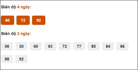 Đầu 6: 4 ngày, Đầu 4: 3 ngày, Đầu 7: 2 ngày, Đầu 9: 2 ngày, Đầu 1: 1 ngày