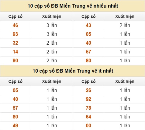 ⚡ 10 cặp số ĐB XSMT về nhiều nhất/ ít nhất tính dến ngày 10/10/2025: