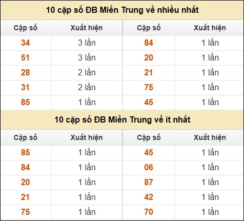 ⚡ 10 cặp số ĐB XSMT về nhiều nhất/ ít nhất tính dến ngày 10/12/2025: