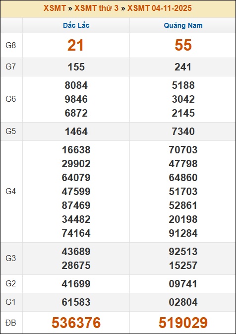Kết quả xổ số Miền Trung 04/11/2025 thứ 3 tuần trước