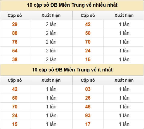 ⚡ 10 cặp số ĐB XSMT về nhiều nhất/ ít nhất tính dến ngày 11/11/2025: